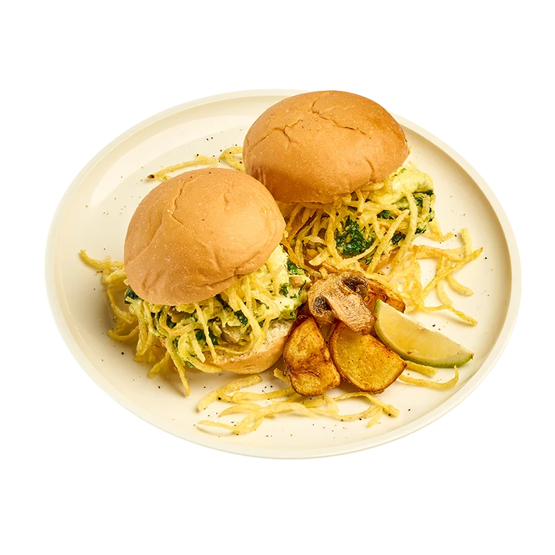 تخم مرغ همزده، اسفناج، کریسپی فرایز، سیب زمینی سرخ شده، قارچ